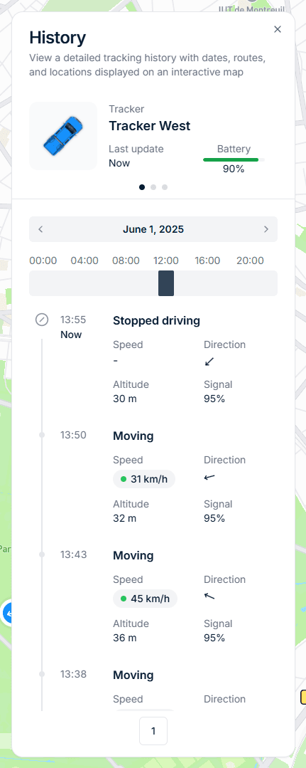 Look back anytime at your tracking history. View previous routes, stops, and travel details to stay informed and organized.
