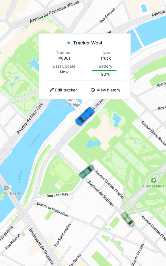 Manage virtual boundaries with custom geofences. Get instant alerts when vehicles enter or leave designated zones for better control.